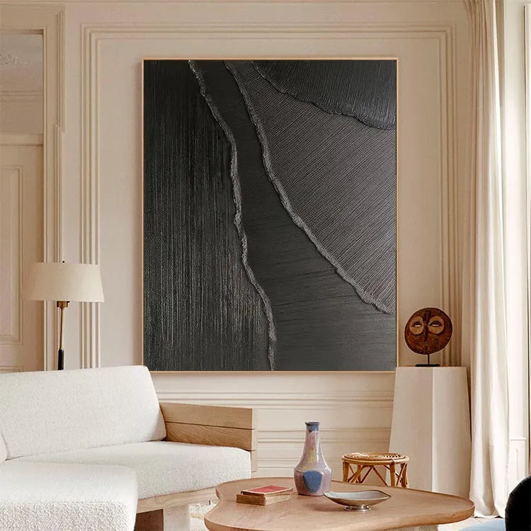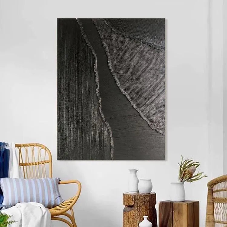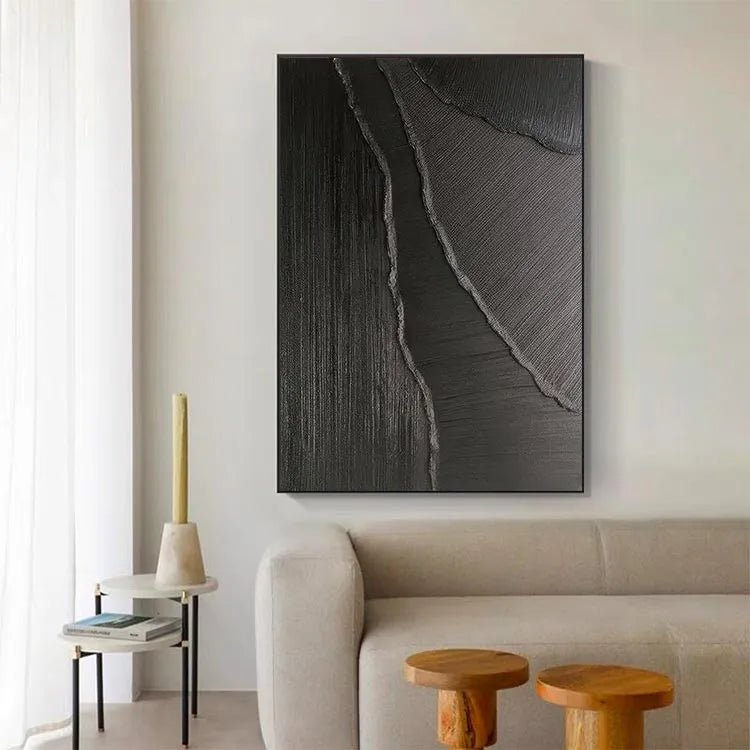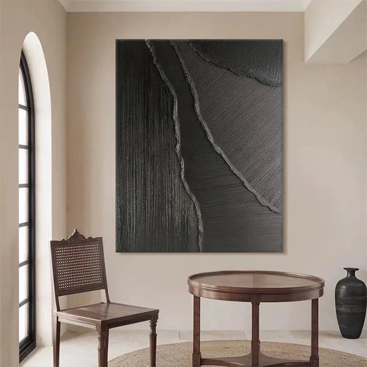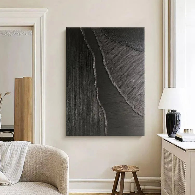 This abstract artwork showcases a meticulous, textured composition with a focus on overlapping, ribbed surfaces. The grayscale palette emphasizes a sense of depth and dimension, with the lightest and darkest areas creating a compelling contrast. The brushstrokes are precise and uniform, suggesting a digital or highly controlled traditional technique. The central, vertical seam divides the piece into two distinct regions, evoking a sense of division or duality. The subtle gradients and fine textures hint at the influence of modern abstraction, with a nod to the minimalism movement. The overall effect is meditative, inviting the viewer to explore the interplay between texture and form.